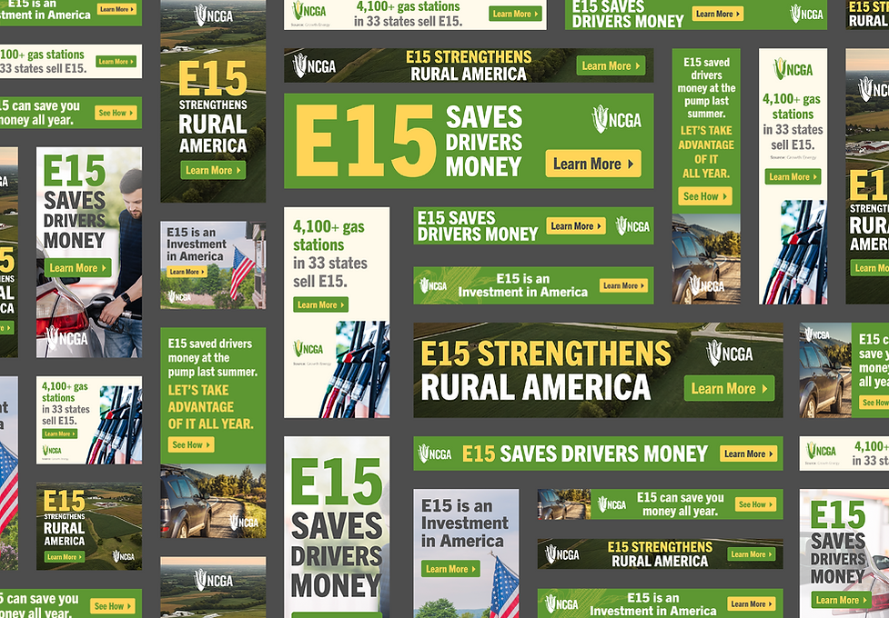 Working closely with account managers and digital strategists, I collaborated on content strategy and creative direction to ensure messaging and key visuals aligned with the campaign goal: educating policymakers on ethanol’s energy, environmental, and economic benefits. The creative emphasized policy-related benefits, including homegrown American fuel, energy independence, consumer cost savings at the pump, and strengthening domestic and rural economies.